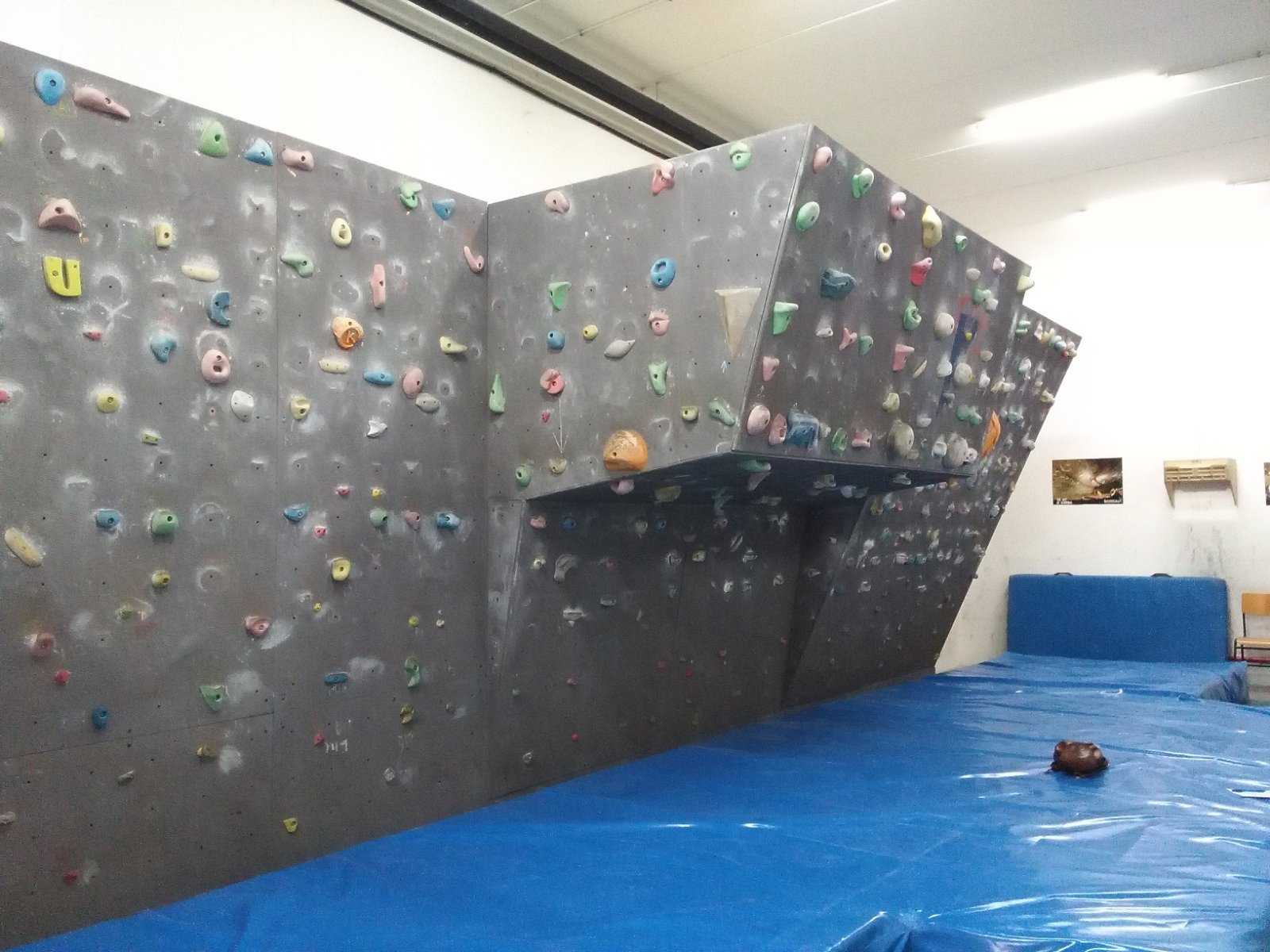 Equipamento dispoñible Muro de escalada de 9,5 x 3,5 m con zona vertical, con desplome e con teito, instalado por Top30 en 2008 e taboleiro con listóns pequenos para entrenamento de forza.